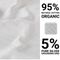 La Sábana Lumitierra está hecha de un 95% de algodón orgánico de alta calidad y un 5% de la mejor plata, permitiéndote conectarte con la Madre Naturaleza como lo harías al caminar descalzo, incluso mientras duermes.